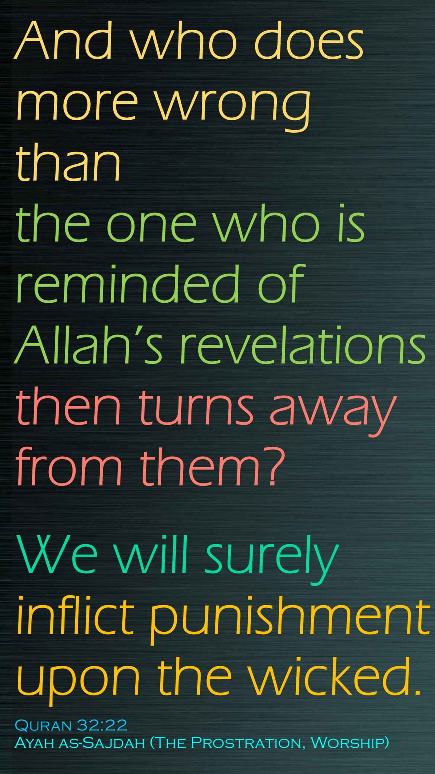 022, 032.32, 22, Allah, daily, inflict, inspirations, islam, islamic, Muhammad, punish, Punishment, quran, remind, revelation, Sajdah<Prostration, Surah, surely, turn away, wicked, wrong