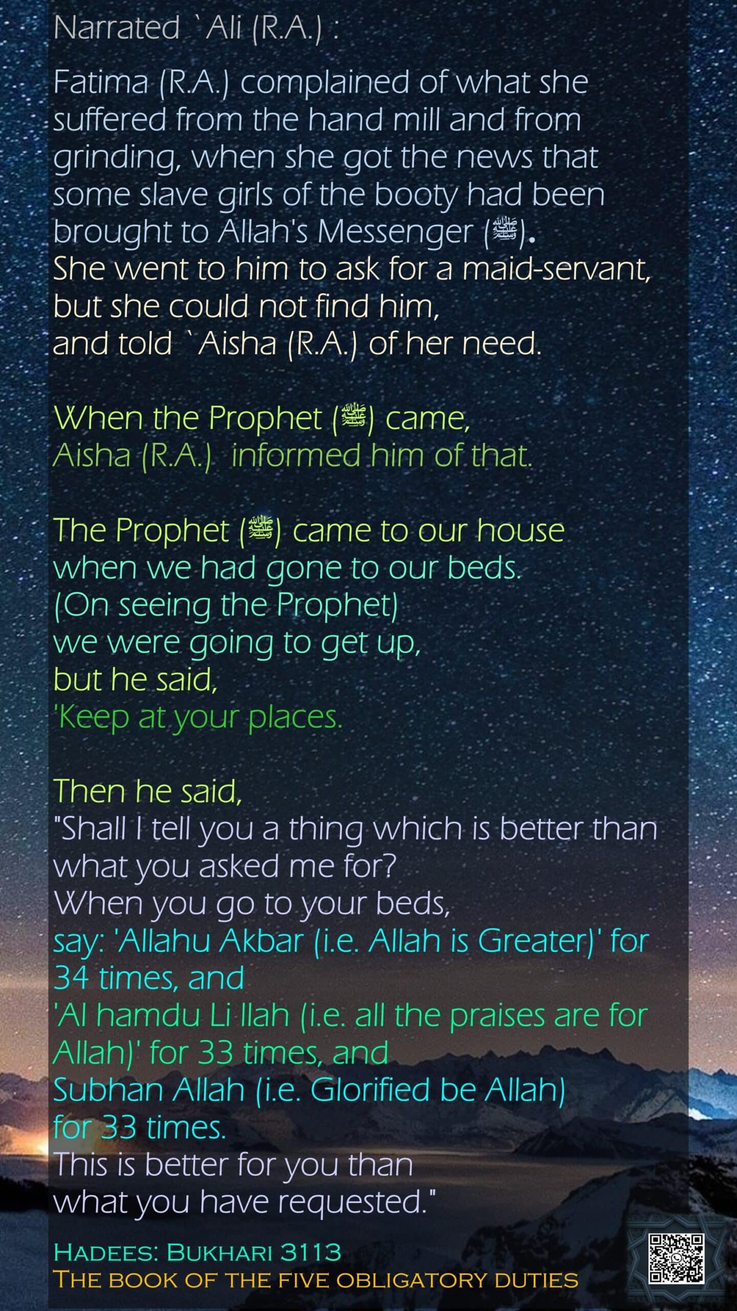 33 times, Aisha, Alah Hu Akbar, Alhamdolillah, Allah, better, daily, grind, handmill, Hands, inspirations, islam, islamic, Muhammad, Razi Allah Anha, Razi Allah Anhu, sleep, SubhanAllah, suffer
