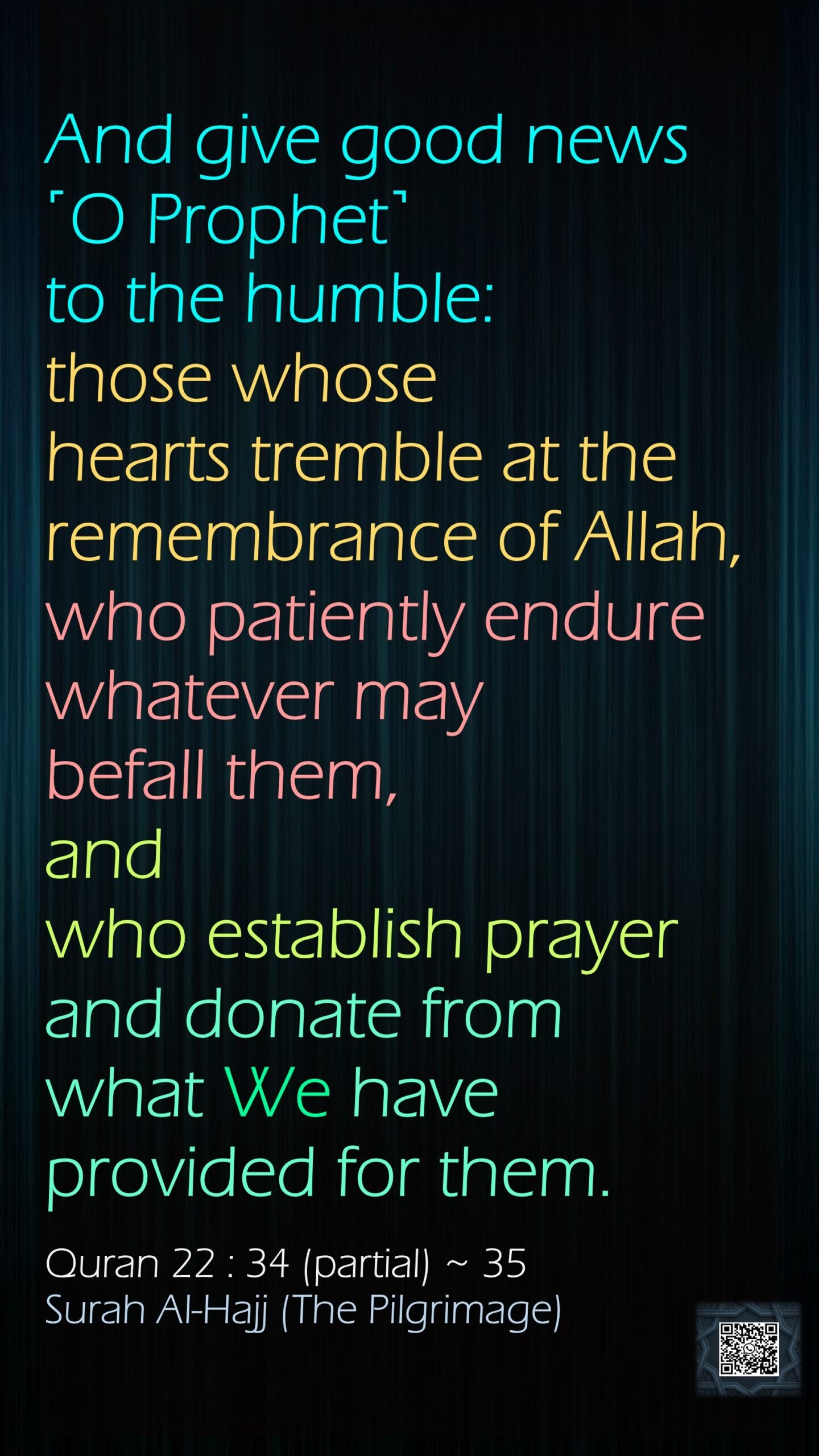 022, 034, 035, 22, 34, Allah, ayat, befall, donate, endure, establish, Hajj, heart, humble, inspirations, islam, islamic, Muhammad, partial, patiently, prayer, provision, quran, remember, remembrance, Surah, test, The Pilgrimage, tremble