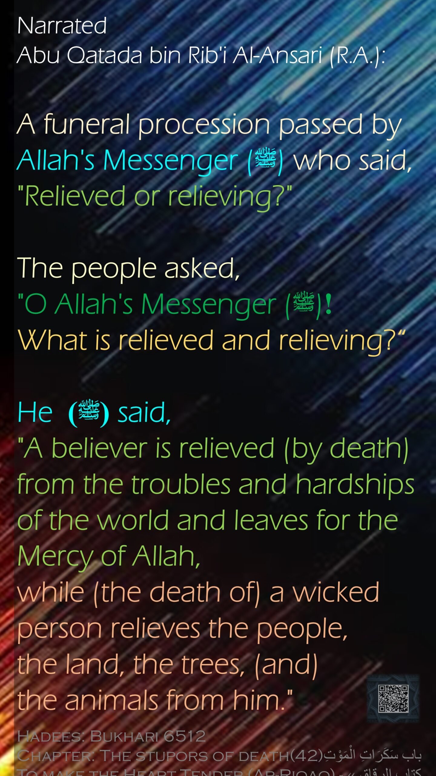 6512, Allah, bnukhari, daily, hardship, inspirations, islam, islamic, Muhammad, relieve, relieved, tender
