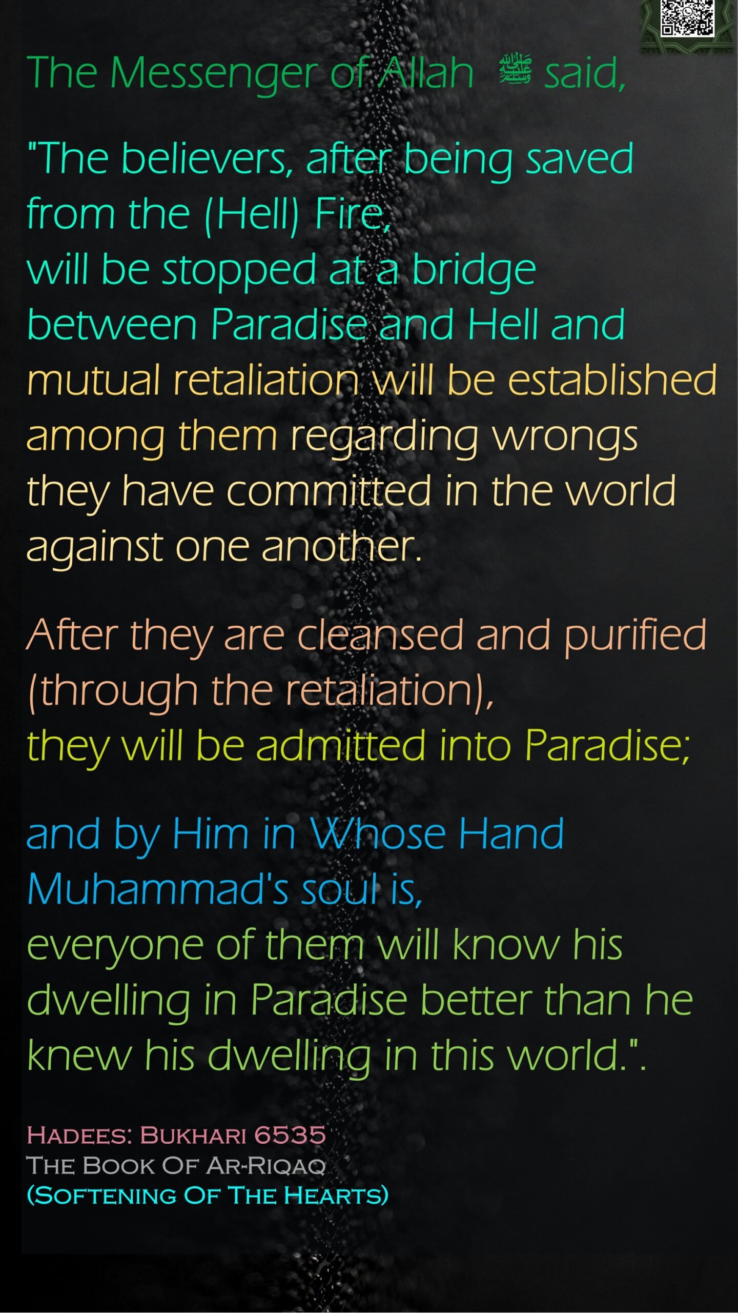 6535, Allah, bridge, bukhari, daily, deeds, dwelling, hadees, hadith, heart, hell, inspirations, islam, islamic, known, Muhammad, mutual, paradise, places, retailations, soft, soften, softening, World, wrongs