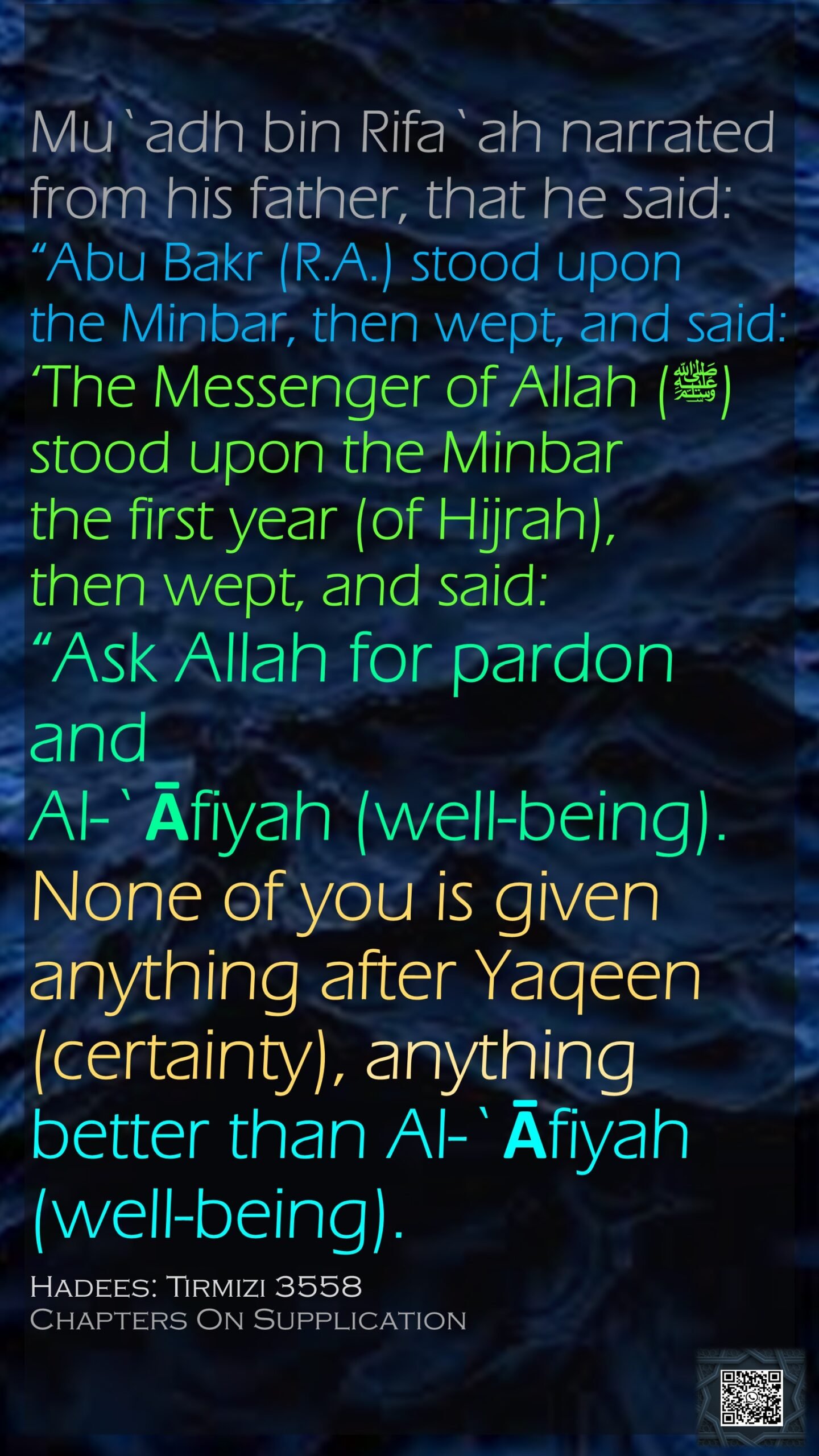 3558, aafia, Aafiyah, Al-`Āfiyah, Allah, certianity, daily, inspirations, islam, islamic, Muhammad, pardon, supplication, tirmidhi, Tirmizi, well-being, Yaqeen, الْعَافِيَةِ, الْعَفْو